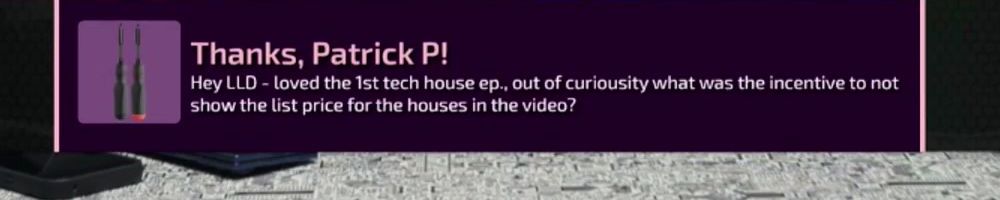 Hey LLD - loved the 1st tech house ep., out of curiousity what was the incentive to not show the list price for the houses in the video?