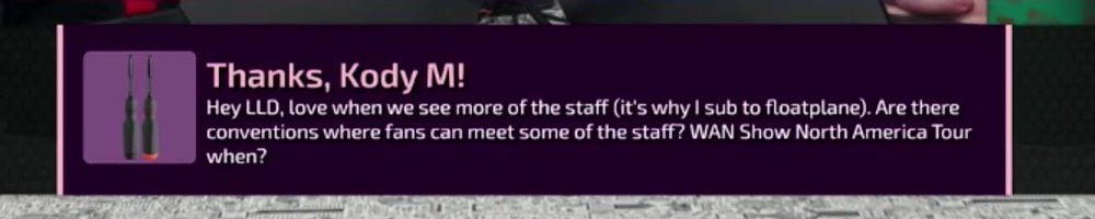 Hey LLD, love when we see more of the staff (it's why I sub to floatplane). Are there conventions where fans can meet some of the staff? WAN Show North America Tour when?