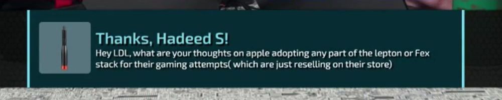 Hey LDL, what are your thoughts on apple adopting any part of the lepton or Fex stack for their gaming attempts( which are just reselling on their store)
