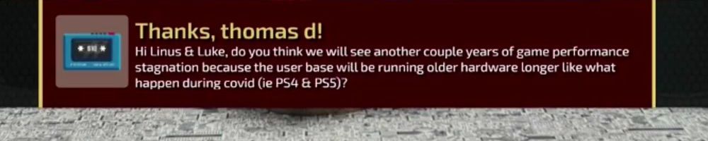 Hi Linus & Luke, do you think we will see another couple years of game performance stagnation because the user base will be running older hardware longer like what happen during covid (ie PS4 & PSS)?