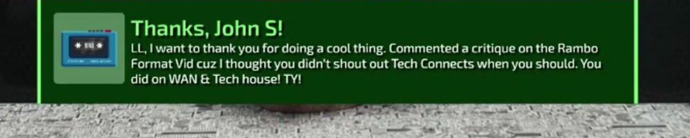 LL, I want to thank you for doing a cool thing. Commented a critique on the Rambo Format Vid cuz I thought you didn't shout out Tech Connects when you should. You did on WAN & Tech house! TY!