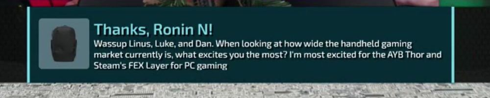 Wassup Linus, Luke, and Dan. When looking at how wide the handheld gaming market currently is, what excites you the most? I'm most excited for the AYB Thor and Steam's FEX Layer for PC gaming