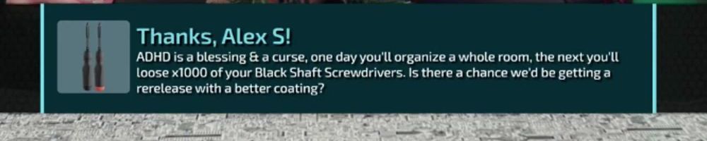 ADHD is a blessing & a curse, one day you'll organize a whole room, the next you'll loose x1000 of your Black Shaft Screwdrivers. Is there a chance we'd be getting a rerelease with a better coating?