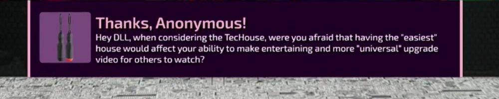 Hey DLL, when considering the TecHouse, were you afraid that having the "easiest" house would affect your ability to make entertaining and more "universal" upgrade video for others to watch?