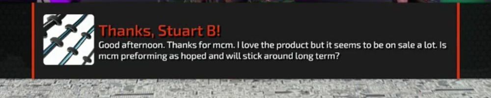 Good afternoon. Thanks for mcm. I love the product but it seems to be on sale a lot. Is mcm preforming as hoped and will stick around long term?