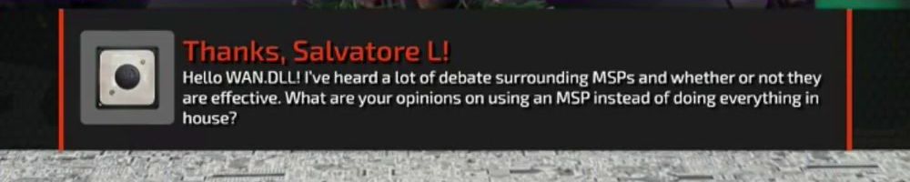 Hello WAN.DLL! I've heard a lot of debate surrounding MSPs and whether or not they are effective. What are your opinions on using an MSP instead of doing everything in house?