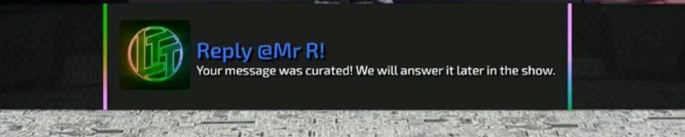 Reply @Mr R! Your message was curated! We will answer it later in the show.