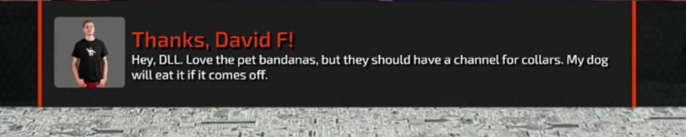 Thanks, David F! Hey, DLL. Love the pet bandanas, but they should have a channel for collars. My dog will eat it if it comes off.