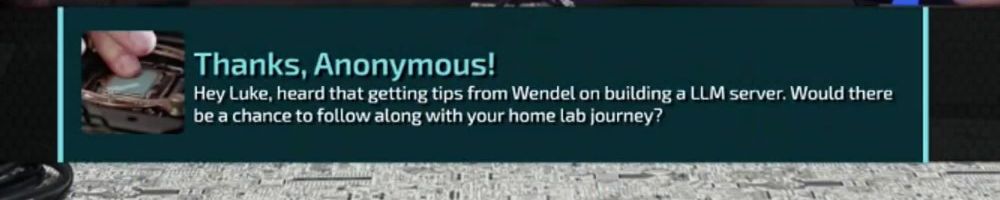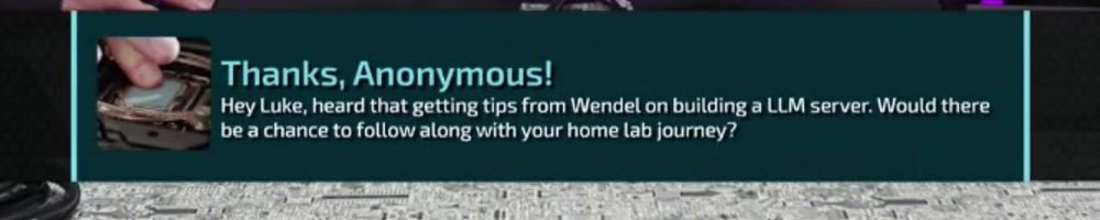 Thanks, Anonymous! Hey Luke, heard that getting tips from Wendel on building a LLM server. Would there be a chance to follow along with your home lab journey?