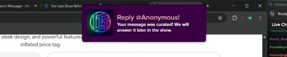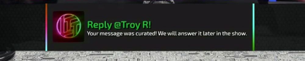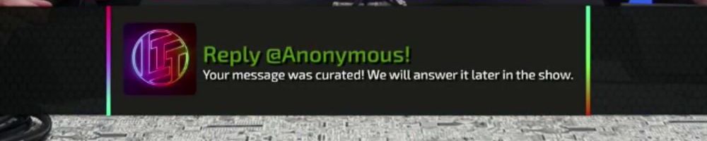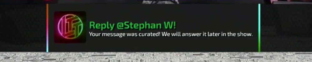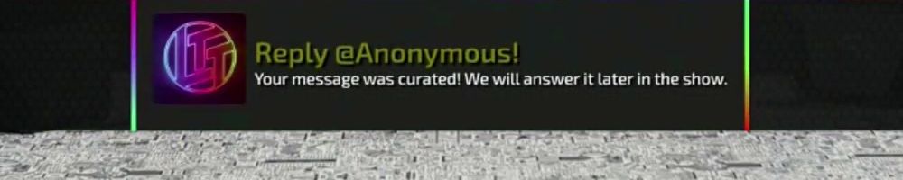Reply @Anonymous! Your message was curated! We will answer it later in the show.