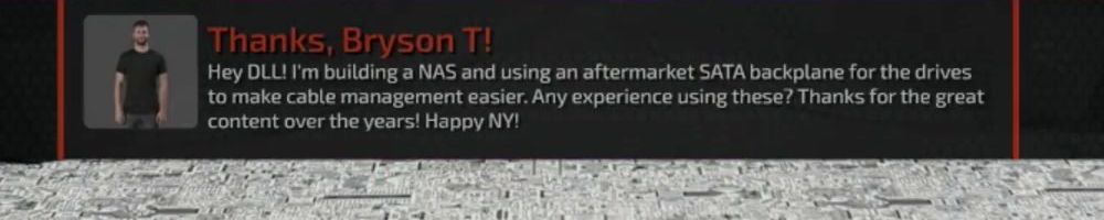 Thanks, Bryson T! Hey DLL I'm building a NAS and using an aftermarket SATA backplane for the drives to make cable management easier. Any experience using these? Thanks for the great content over the years! Happy NY!