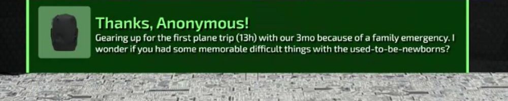 Thanks, Anonymous! Gearing up for the first plane trip (13h) with our 3mo because of a family emergency. I wonder if you had some memorable difficult things with the used-to-be-newborns?