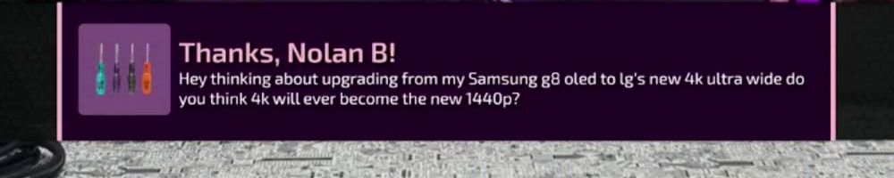 Thanks, Nolan B! Hey thinking about upgrading from my Samsung g8 oled to lg's new 4k ultra wide do you think 4k will ever become the new 1440p?
