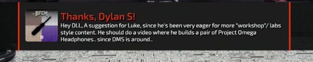 Thanks, Dylan S! Hey DLL, A suggestion for Luke, since he's been very eager for more "workshop"/ labs style content. He should do a video where he builds a pair of Project Omega Headphones.. since DMS is around.