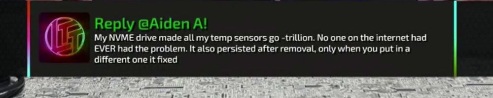 Reply @Aiden A! My NVME drive made all my temp sensors go -trillion. No one on the internet had EVER had the problem.