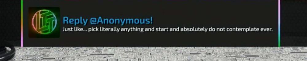 Reply @Anonymous! Just like... pick literally anything and start and absolutely do not contemplate ever.