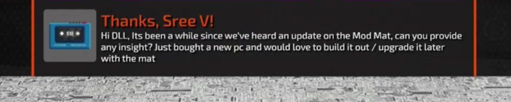 Hi DLL, Its been a while since we've heard an update on the Mod Mat, can you provide any insight? Just bought a new pc and would love to build it out / upgrade it later with the mat