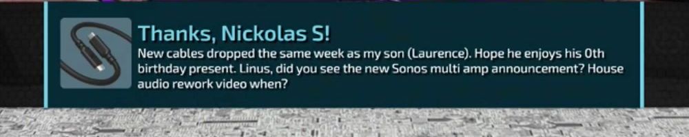 New cables dropped the same week as my son (Laurence). Hope he enjoys his 0th birthday present. Linus, did you see the new Sonos multi amp announcement? House audio rework video when?