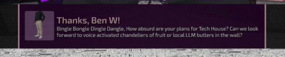 Bingle Bongle Dingle Dangle, How absurd are your plans for Tech House? Can we look forward to voice activated chandeliers of fruit or local LLM butlers in the wall?