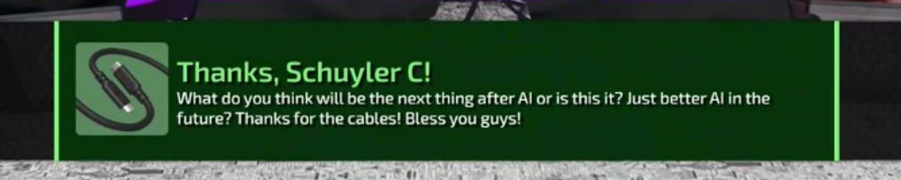 What do you think will be the next thing after AI or is this it? Just better AI in the future? Thanks for the cables! Bless you guys!