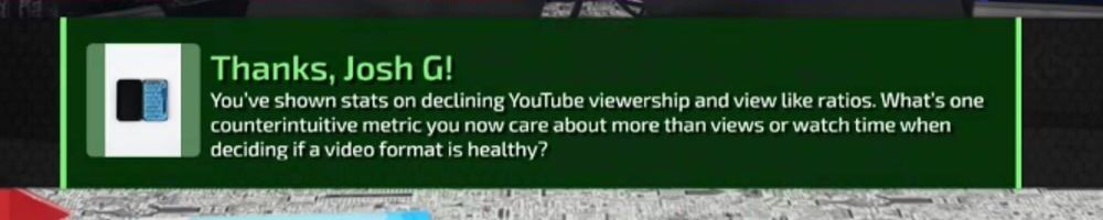 You've shown stats on declining YouTube viewership and view like ratios. What's one counterintuitive metric you now care about more than views or watch time when deciding if a video format is healthy?