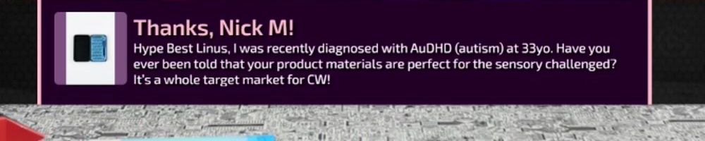 Hype Best Linus, I was recently diagnosed with AuDHD (autism) at 33yo. Have you ever been told that your product materials are perfect for the sensory challenged? It's a whole target market for CW!