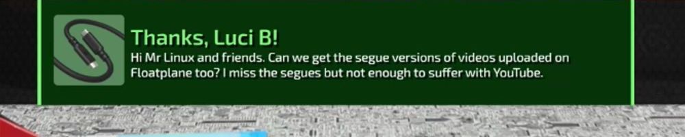 Hi Mr Linux and friends. Can we get the segue versions of videos uploaded on Floatplane too? I miss the segues but not enough to suffer with YouTube.