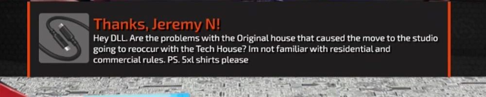 Hey DLL. Are the problems with the Original house that caused the move to the studio going to reoccur with the Tech House? Im not familiar with residential and commercial rules. PS. 5xl shirts please