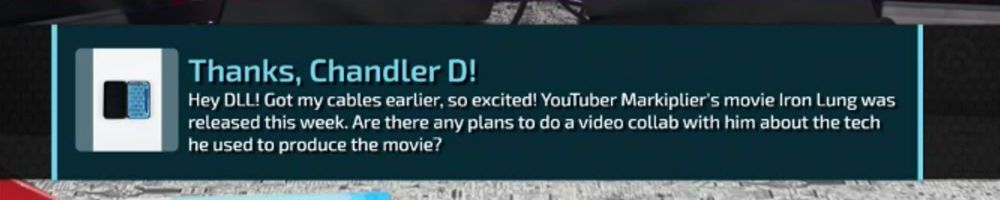 Hey DLL! Got my cables earlier, so excited! YouTuber Markiplier's movie Iron Lung was released this week. Are there any plans to do a video collab with him about the tech he used to produce the movie?