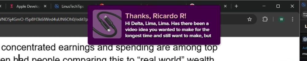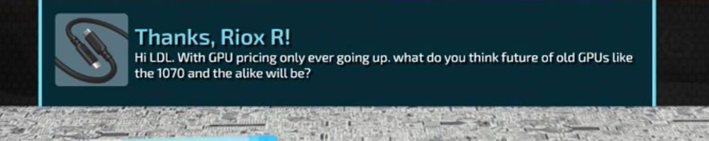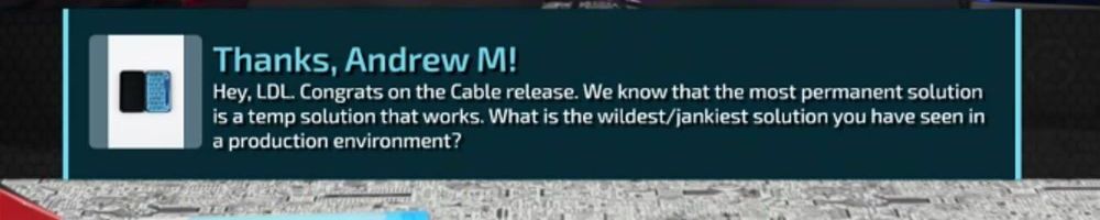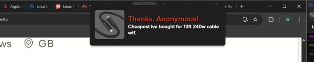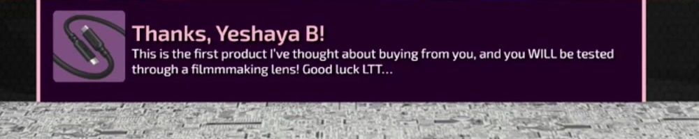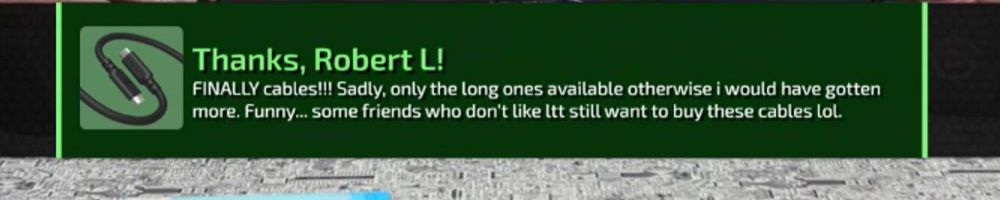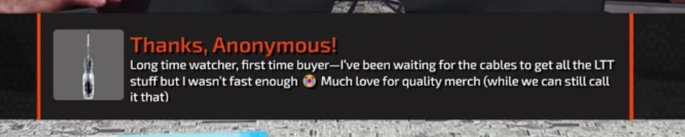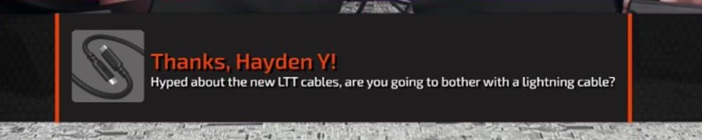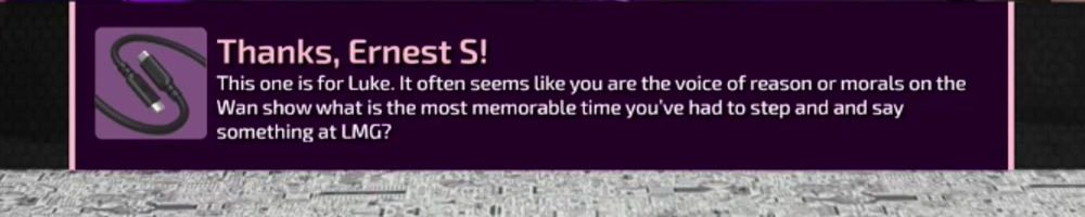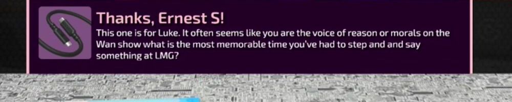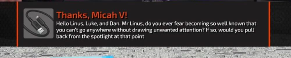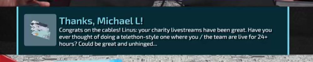 Congrats on the cables! Linus: your charity livestreams have been great. Have you