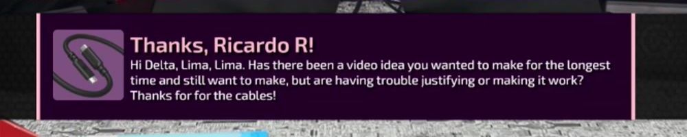 Hi Delta, Lima, Lima. Has there been a video idea you wanted to make for the longest time and still want to make, but are having trouble justifying or making it work? Thanks for for the cables!
