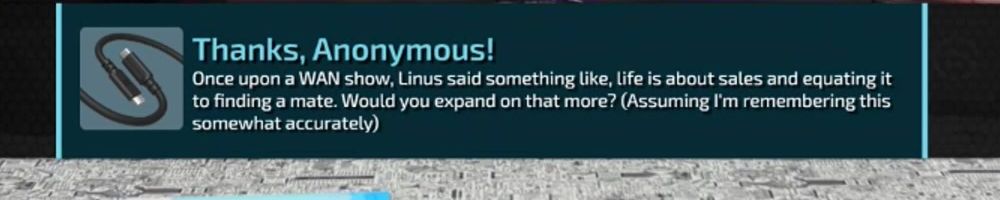 Once upon a WAN show, Linus said something like, life is about sales and equating it to finding a mate. Would you expand on that more? (Assuming I'm remembering this somewhat accurately)
