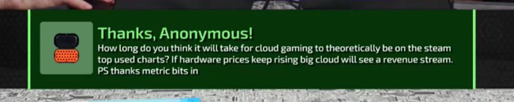 How long do you think it will take for cloud gaming to theoretically be on the steam top used charts? If hardware prices keep rising big cloud will see a revenue stream. PS thanks metric bits in