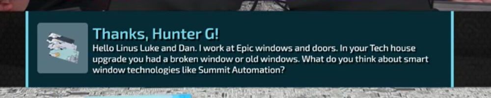 Hello Linus Luke and Dan. I work at Epic windows and doors. In your Tech house upgrade you had a broken window or old windows. What do you think about smart window technologies like Summit Automation?