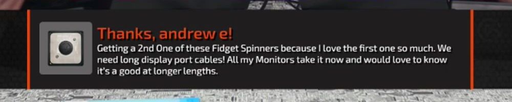 Getting a 2nd One of these Fidget Spinners because I love the first one so much. We need long display port cables! All my Monitors take it now and would love to know it's a good at longer lengths.
