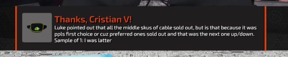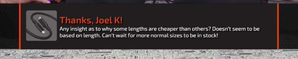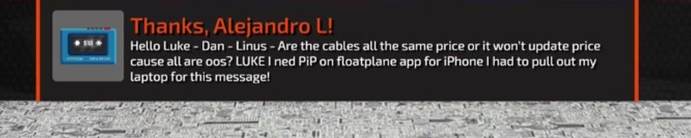Hello Luke - Dan - Linus - Are the cables all the same price or it won't update price cause all are oos? LUKE I ned PiP on floatplane app for iPhone I had to pull out my laptop for this message!