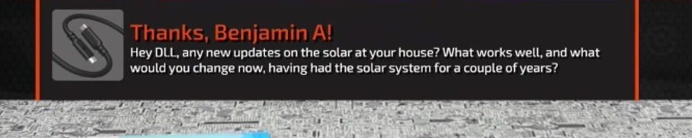 Hey DLL, any new updates on the solar at your house? What works well, and what would you change now, having had the solar system for a couple of years?