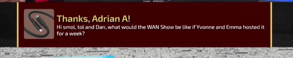 Hint: Use CTRL + F to search messages in this show, or use Whenplane's WAN Show Search tool to search for messages in all shows.
