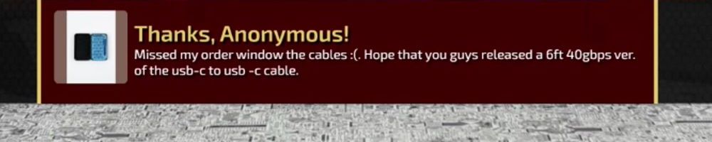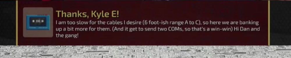 I am too slow for the cables I desire (6 foot-ish range A to C), so here we are banking up a bit more for them. (And it get to send two COMs, so that's a win-win) Hi Dan and the gang!
