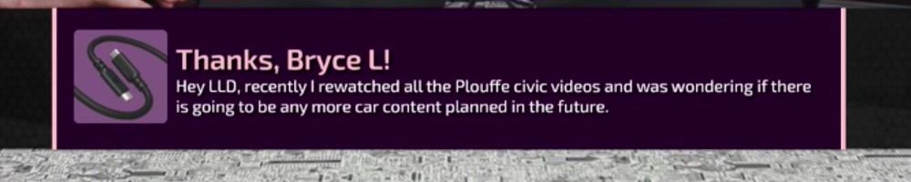 Hey LLD, recently I rewatched all the Plouffe civic videos and was wondering if there is going to be any more car content planned in the future.