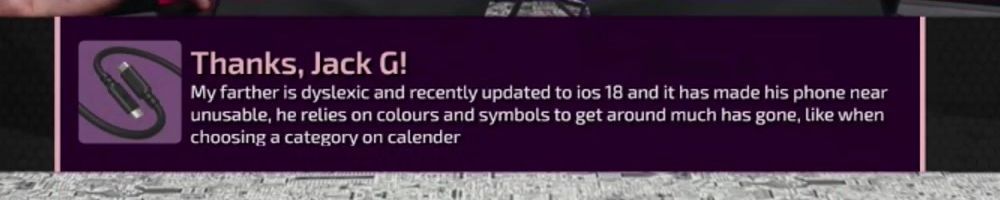 My farther is dyslexic and recently updated to ios 18 and it has made his phone near unusable, he relies on colours and symbols to get around much has gone, like when choosing a category on calender