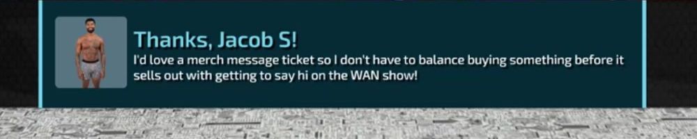 I'd love a merch message ticket so I don't have to balance buying something before it sells out with getting to say hi on the WAN show!