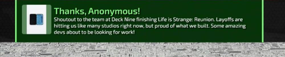 Shoutout to the team at Deck Nine finishing Life is Strange: Reunion. Layoffs are