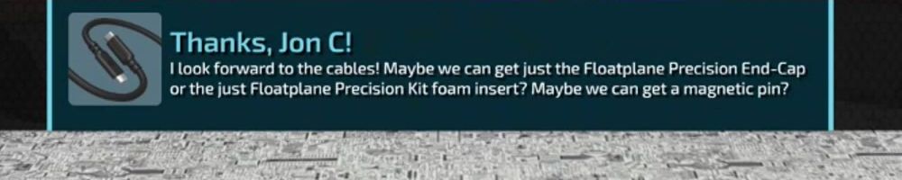 I look forward to the cables! Maybe we can get just the Floatplane Precision End-Cap or the just Floatplane Precision Kit foam insert? Maybe we can get a magnetic pin?