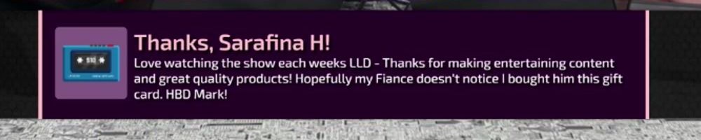 Love watching the show each weeks LLD - Thanks for making entertaining content and great quality products! Hopefully my Fiance doesn't notice I bought him this gift card. HBD Mark!