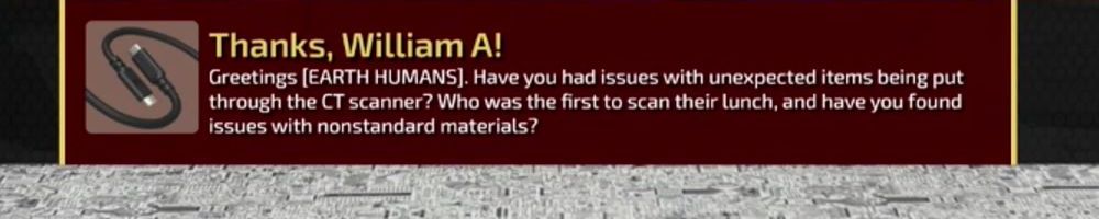 Greetings [EARTH HUMANS]. Have you had issues with unexpected items being put through the CT scanner? Who was the first to scan their lunch, and have you found issues with nonstandard materials?