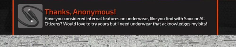 Have you considered internal features on underwear, like you find with Saxx or All Citizens? Would love to try yours but I need underwear that acknowledges my bits!