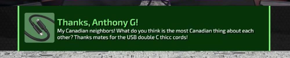 My Canadian neighbors! What do you think is the most Canadian thing about each other? Thanks mates for the USB double C thicc cords!