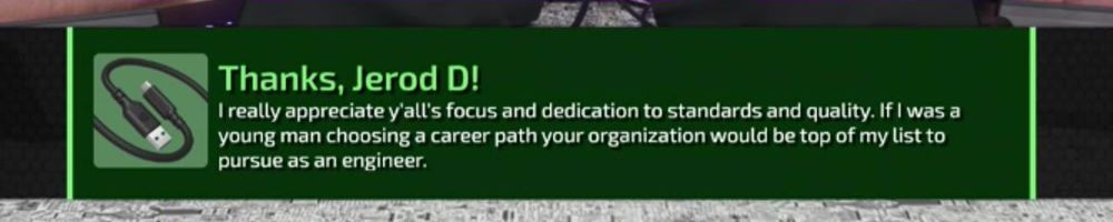 I really appreciate y'all's focus and dedication to standards and quality. If I was a young man choosing a career path your organization would be top of my list to pursue as an engineer.