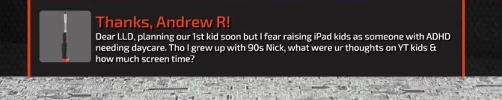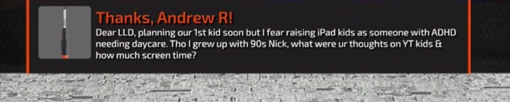 Dear LLD, planning our 1st kid soon but I fear raising iPad kids as someone with ADHD needing daycare. Tho I grew up with 90s Nick, what were ur thoughts on YT kids & how much screen time?